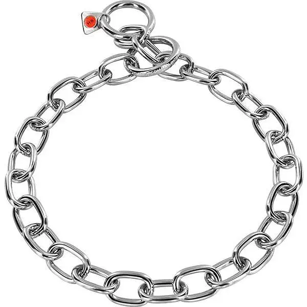 Sprenger Extra Strong Medium Link - особливо міцний ривковий нашийник-ланцюг для собак вагою до 110 кг. Рекомендується як для повсякденного вигулу, так і для виставок. Ефективний у навчанні цуценят і дорослих собак, які тягнуть на прогулянці. Нашийник Спренгер повністю виготовлений з нержавіючої сталі преміум-якості. Являє собою ланцюг з довгастих плоских ланок з 2-ма круглими кільцями на кінцях. Всі деталі зварні, нероз'ємні.Ланцюг працює як тренувальний ривковий нашийник, коли повідець прикріплений до вільного кільця: при ривку нашийник починає затягуватися, даючи зрозуміти собаці про небажану поведінку. Якщо прикріпити повідець до закріпленого кільця, то нашийник буде працювати як звичайний прогулянковий.Кожна собака гідна носити нашийник Sprenger! ВАЖЛИВО! Нержавіюча сталь містить хром і нікель, тому амуніція з нержавіючої сталі не підходить для собак, у яких є алергія на нікель. Для таких вихованців рекомендується амуніція з гіпоалергенного сплаву куроган, де нікель у складі відсутній. Чому варто купити нашийник-ланцюг для собак Sprenger Extra Strong Medium Link: міцний, надійний і зручний у використанні; виняткова міцність на розрив - 440 кПа; швидко одягається через голову вихованця; дозволяє власнику повністю і без зусиль контролювати рух собаки на прогулянці при ривку;підходить для виставок і повсякденного вигулу; виготовлений з нержавіючої сталі преміум-якості, стійкої до іржі та корозії, умов екстремальної вологості, морської води та поверхневих механічних пошкоджень (порізи, подряпини); не фарбує шерсть; відсутність запаху;максимальна вага вихованця - 110 кг;виготовлений зі сталевого дроту калібру 4 мм;тип ланцюга - середня плоска ланка 2,6х1,8 см;2 круглі кільця - 35х5 мм;рекомендується для собак усіх порід з короткою або середньою довжиною шерсті;німецька якість: виготовлений у Німеччині провідним у світі виробником високоякісних товарів для собак.