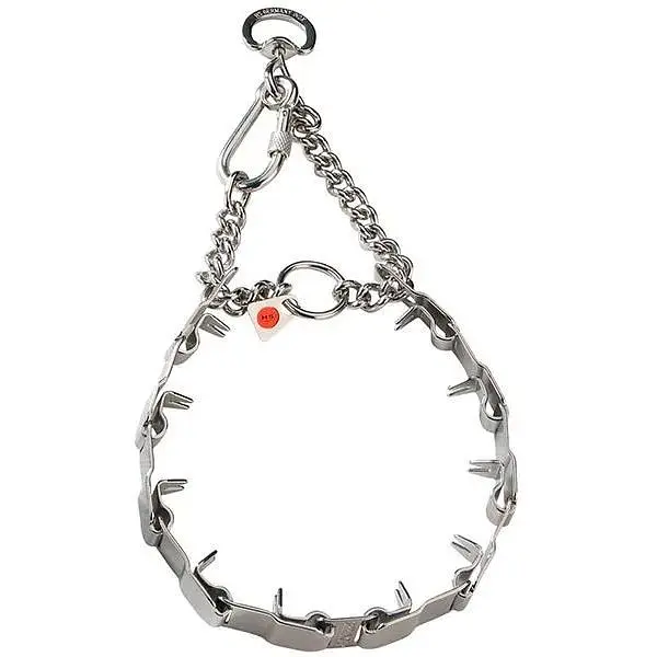 Sprenger NECK-TECH SPORT - строгий пластинчастий нашийник-зашморг з карабіном, призначений для дресирування та вигулу собак. Пластини Sprenger з короткими шипами міцно з'єднані між собою. Підганяючи нашийник за розміром, кількість пластин можна без труднощів зменшити або збільшити. Шерсть у місцях контакту з нашийником не фарбується і не "стирається", виріб чудово носиться за будь-якої погоди. Нашийник необхідно знімати після прогулянки або тренування. Строгий нашийник-зашморг Sprenger NECK-TECH SPORT підходить для короткошерстих собак. Нашийник для собак Sprenger NECK-TECH SPORT оснащений карабіном, що витримує значні навантаження, полегшує процес застібання-розстібання нашийника на собаці. За допомогою карабіна зашморгу можна легко контролювати вихованця під час прогулянки або тренування. Щоб уникнути травм, одягати та знімати нашийник через голову тварини потрібно шипами назовні. Підбираючи строгий нашийник, враховуйте, що він повинен не вільно висіти на шиї тварини, а щільно прилягати до неї. Довжина ланки: 28 мм. Ширина ланки: 22 мм. Розміри нашийника: 48 см або 60 см. Матеріал: нержавіюча сталь.