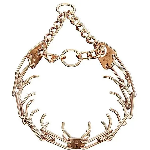 Строгий нашийник з довгими дротяними шипами призначений для дресирування та щоденного вигулу собак. Особливістю строгих нашийників Sprenger є специфічне розташування ланок: вони з'єднані не по колу, одна за одною, а розходяться в протилежні сторони від центральної пластини нашийника, створюючи "ефект щелеп", що дозволяє рівномірно розподілити навантаження по всій довжині нашийника. Кінці зубчиків нашийника гладкі, тому шкіра тварини не травмується під час носіння. Підганяючи нашийник за розміром, Ви можете без труднощів зменшити або збільшити кількість ланок, відповідно підібравши додаткові ланки потрібного діаметра дроту, ширини та матеріалу. Дана модель нашийника доступна у двох варіантах: нержавіюча сталь та куроган. Шерсть у місцях контакту з нашийником не фарбується і не травмується, виріб чудово носиться за будь-якої погоди. Нашийник необхідно знімати після прогулянки або тренування. Підійде собакам із шерстю будь-якого типу, довжини та густоти. Зі строгим нашийником-задушкою контролювати вихованця під час прогулянки буде легко. Щоб уникнути травмування, одягайте та знімайте нашийник через голову тварини шипами назовні. Ретельно підберіть потрібний розмір даної моделі, оскільки цей нашийник одягається тільки через голову собаки і має обмеження за діаметром.
