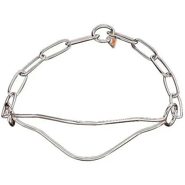Виставковий нашийник-ланцюжок з кадиком. Ця модель представлена у двох варіантах: нержавіюча сталь та полірована латунь. Нашийник не фарбує шерсть собаки, а великі ланки ланцюжка не "витирають" її. Спеціальний кадик виконаний у формі шиї собаки, що забезпечує в рингу правильну виставкову позицію тварини. Нашийник одягається і знімається через голову собаки.