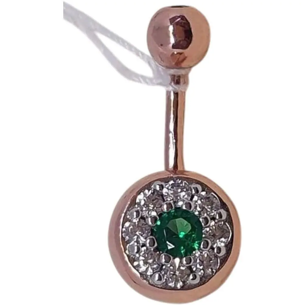 Сережка для пірсингу пупка з срібла 925 проби з позолотою 585 проби, зі вставкою - фіаніт
