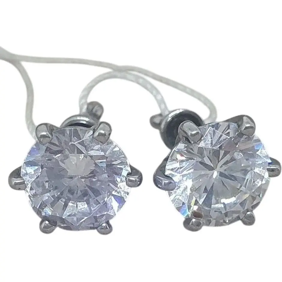 Пуссети з срібла 925 проби з фіанітами, вкриті родієм
