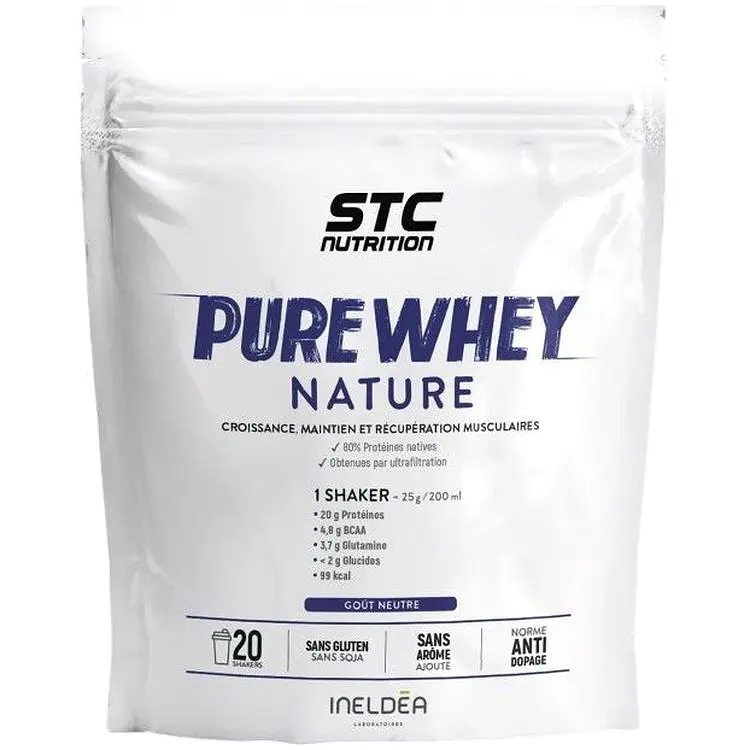 Протеїн STC Nutrition Pure Whey Nature - це сироватковий концентрат, що містить 80% нативного молочного білка, тобто 20 г на порцію, в тому числі 4.8 г BCAA, з низьким вмістом цукру і жиру.