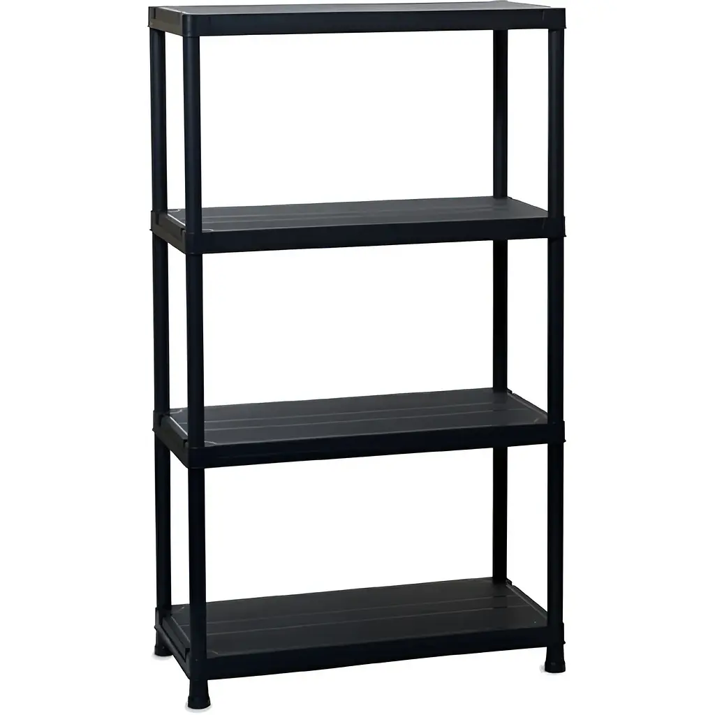 Пластиковий стелаж чорного кольору не мазкий і відмінно впишеться у будь-який інтер'єр. Пластик, на відміну від металу та дерева, не схильний до корозії, йому не страшна волога. Пластикові стелажі не вимагають фарбування, а легка збірка і невелика вага роблять їх дуже практичними та зручними при експлуатації та транспортуванні.