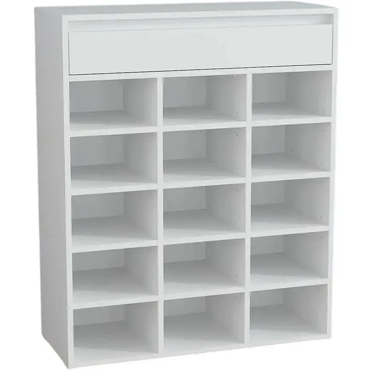 Стелаж для взуття з шухлядою з ДСП O-5. Взуттєва полка для взуття з ящиком - компактна, але дуже містка конструкція, адже вона дозволяє одночасно зберігати до 15 пар взуття. Виконана з ДСП 16 мм.