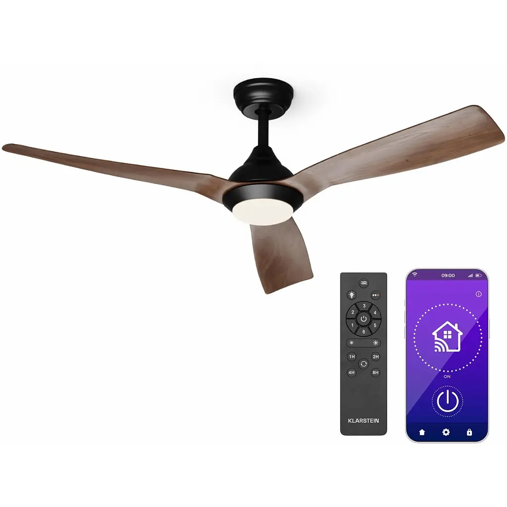 Інтелектуальні функції стельового вентилятора Klarstein Fiji Flow Smart дозволяють зручно керувати вентилятором з будь-якої точки дому - за допомогою пульта дистанційного керування (за допомогою настінного кронштейна), голосової команди або програми Smart App. Завдяки 6 швидкостям вітру та таймеру (1/3/8 годин) ви можете налаштувати налаштування та навіть активувати автоматичний режим сну.
