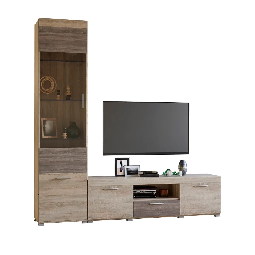 Створити сучасний та стильний інтер'єр вітальні не так просто! Зверніть увагу на вітальну стінку Британія Комплект 6 від фабрики Еверест - поєднання ергономіки та зручності. Лаконічний стиль переважає у всій колекції Британія, сучасні матеріали та комплектуючі. Подовжена тумба під телевізор із двома місткими відділеннями та відкритою полицею. Тут розміститься акустична система, програвач відео чи ресивер.