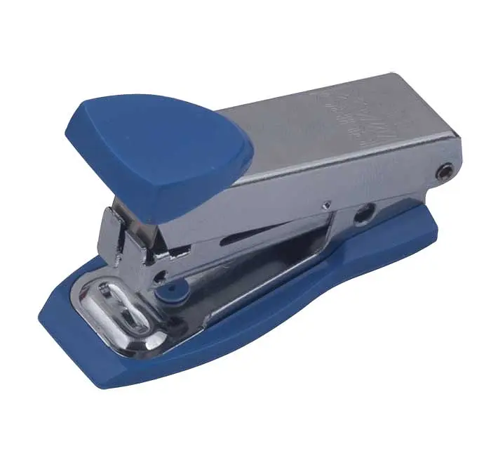 Степлер металевий міні, до 12 аркушів, скоби №10, синій із компактним дизайном. Виготовлений із металу, скоби №10. Сприяє зшиванню документів. Ідеально для офісу та школи. Створюйте порядок у паперах!