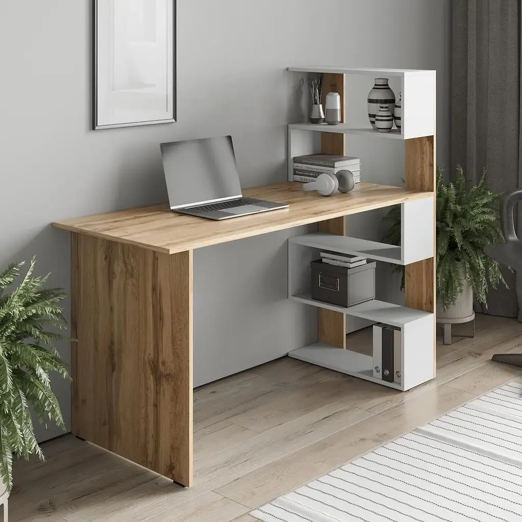 Комп'ютерний стіл Moreli SТ0015 допоможе облаштувати комфортне місце для роботи завдяки оптимальним розмірам стільниці та зручними секціями для зберігання папок, книг або оргтехніки. Конструкція з відкритими полицями візуально не перевантажує обстановку, а лаконічне виконання підходить для більшості сучасних інтер'єрів.