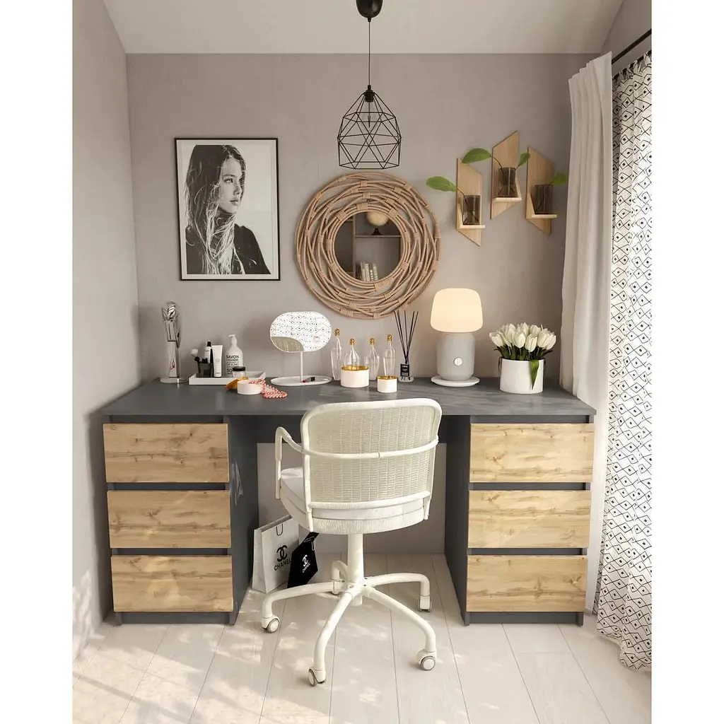 Стіл комп'ютерний Moreli T-228 Стіл із двома тумбами Moreli T-228 - практичний та доступний за ціною варіант для роботи чи навчання. Письмовий стіл вигідно відрізняє простора робоча поверхня. Зручно розмістити в зоні швидкого доступу канцелярське приладдя, навчальні матеріали та особисті речі допоможуть дві тумби з висувними ящиками. К підібравши колір до вподоби. Розміри Ш1580 мм/ В758 мм/ Г600 мм корпус та фасад можуть бути комбіновані між собою