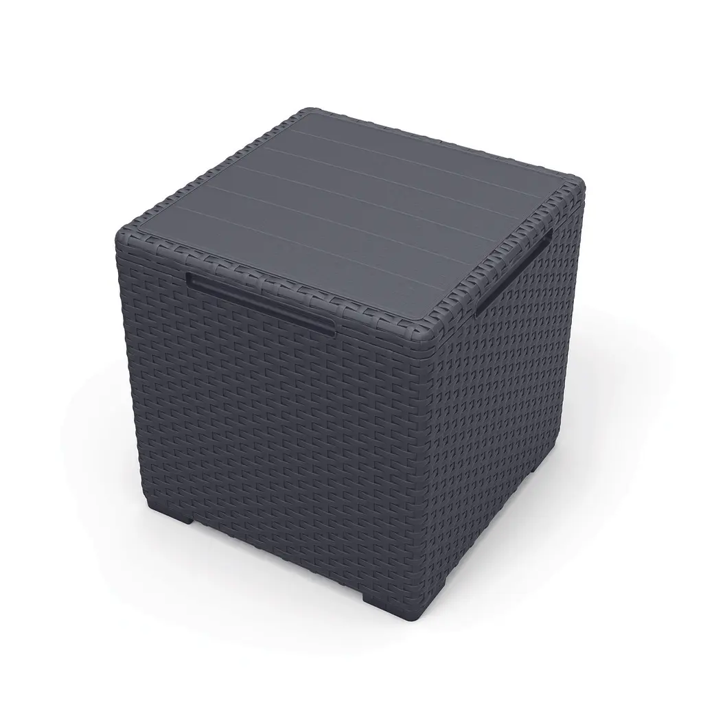 Стіл-скриня Keter Vigo, 50 л у стильному кольорі графіт поєднує у собі зручний та компактний столик з додатковою функцією зберігання. Виріб підходить як для зовнішнього, так і для внутрішнього користування. Це хороший варіант для саду, тераси, балкону, веранди та універсальне рішення для зберігання речей, що водночас може доповнити будь-який простір, як столик для напоїв та закусок або підставка для декору.