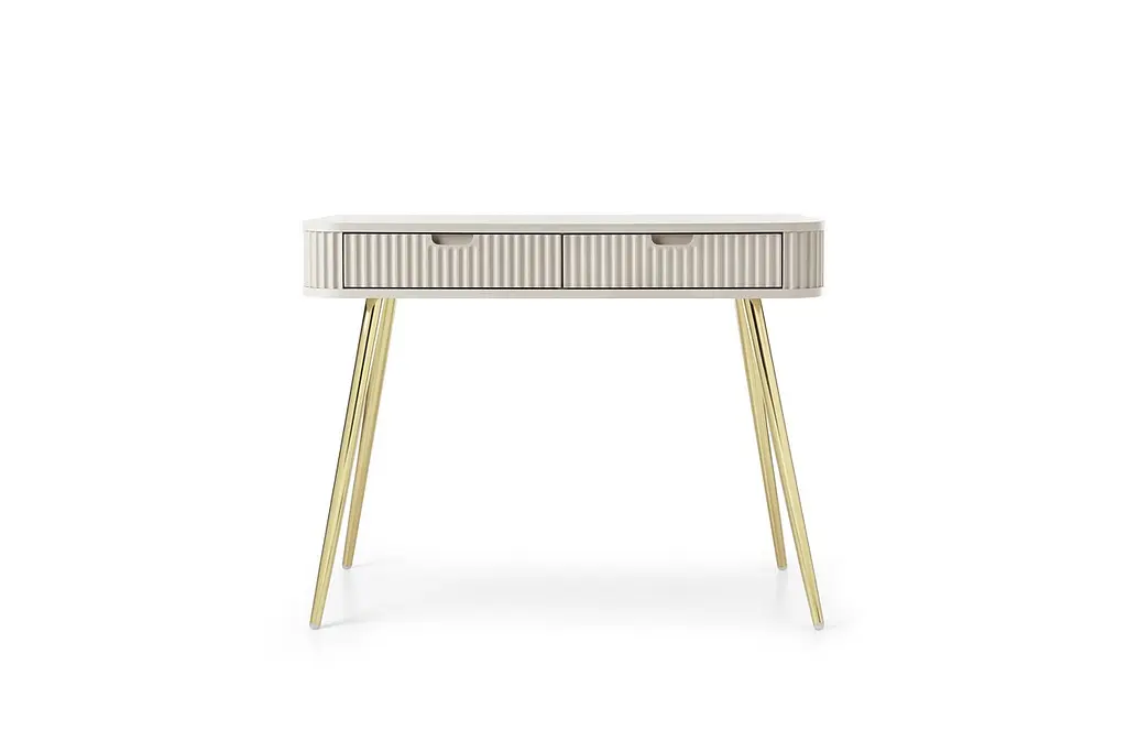 Створіть унікальний стиль у вашій спальні з туалетним столом Perfect Home Зова. Його елегантний дизайн з ніжками золотого кольору надає інтер'єру розкішного вигляду, а ніжний відтінок кашеміру робить його ідеальним вибором для будь-якого стилю оформлення. Ви заслуговуєте на те, щоб мати простір, який не тільки функціональний, але й естетично привабливий.
