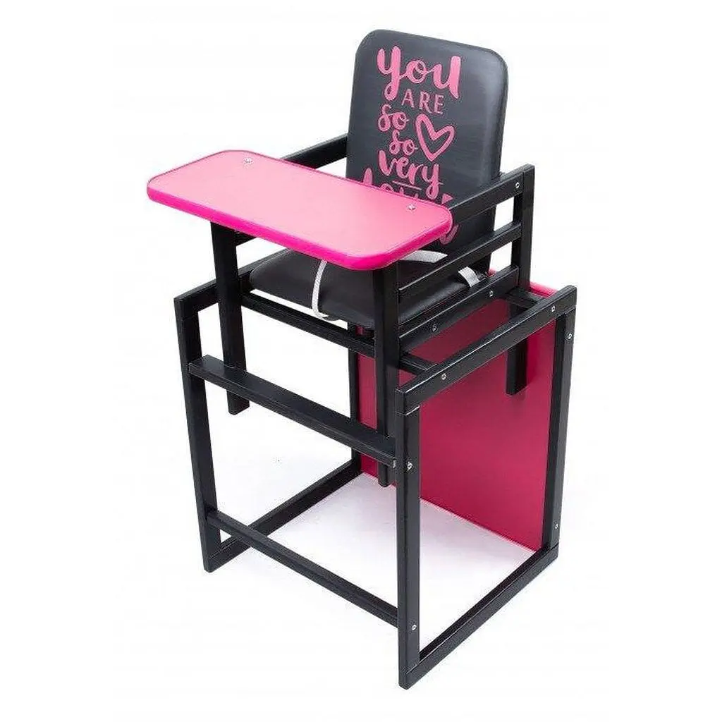 До кінця акції 307 днівДетский деревянный стульчик для кормлении ОMMI Graphite Малиновый изготовлен из натуральной древесины - массива ольхи. Этот стульчик для кормления является моделью-трансформером. С 6-го месяца, его использование предназначено как стульчик для кормления, а в дальнейшем, когда малыш подрастет, может служить игровым столиком и обычным стульчиком. Ваш малыш будет играть любимыми игрушками, рисовать первые рисунки, лепить первые скульптуры и многое другое. Стульчик для кормления Ommi отличается высоким качеством материалов, из которых он изготовлен. Все видимые детали закругленные, ЛДСП из которой изготовлены столешница и столик - обработанная качественным Т-профилем, и прочно зафиксирована в пазах. Столешница - является большой по размеру и удобной в пользовании, может перемещаться в двух положениях. Изготовлена из экологического ЛДСП толщиной 16 мм. Этот материал является основным при изготовлении мебели, не боится влаги и перепадов температуры, благодаря чему по данному изделию будет легко ухаживать. Также особого внимания заслуживает сиденье, изготовленное из прочной европейской пленки, которую можно будет легко мыть в процессе эксплуатации и она не впитывает влагу. В конструкции стульчика есть дополнительные перекладины, которые будут служить дополнительным барьером по бокам. И еще в базовую комплектацию стульчика входит трехточечный ремень безопасности.