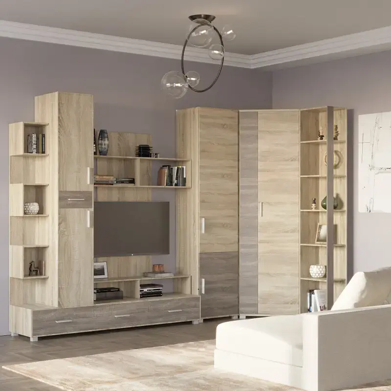 До кінця акції 156 днівСтінка для вітальні Бриз + Пенал 15 + Кутова шафа ШКУ-14 + Пенал 18 Дуб Сонома + Трюфель