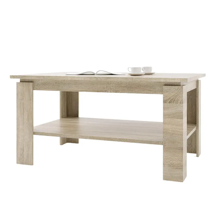 Добре продумана конструкція являє собою дві сполучені прямими масивними ніжками планки прямокутної форми. Нижня полиця призначена для журналів, газет та аксесуарів, а верхня стільниця може бути прикрашена елементами декору, а також використана для сервірування чаю, кави або легких закусок під час приймання гостей.