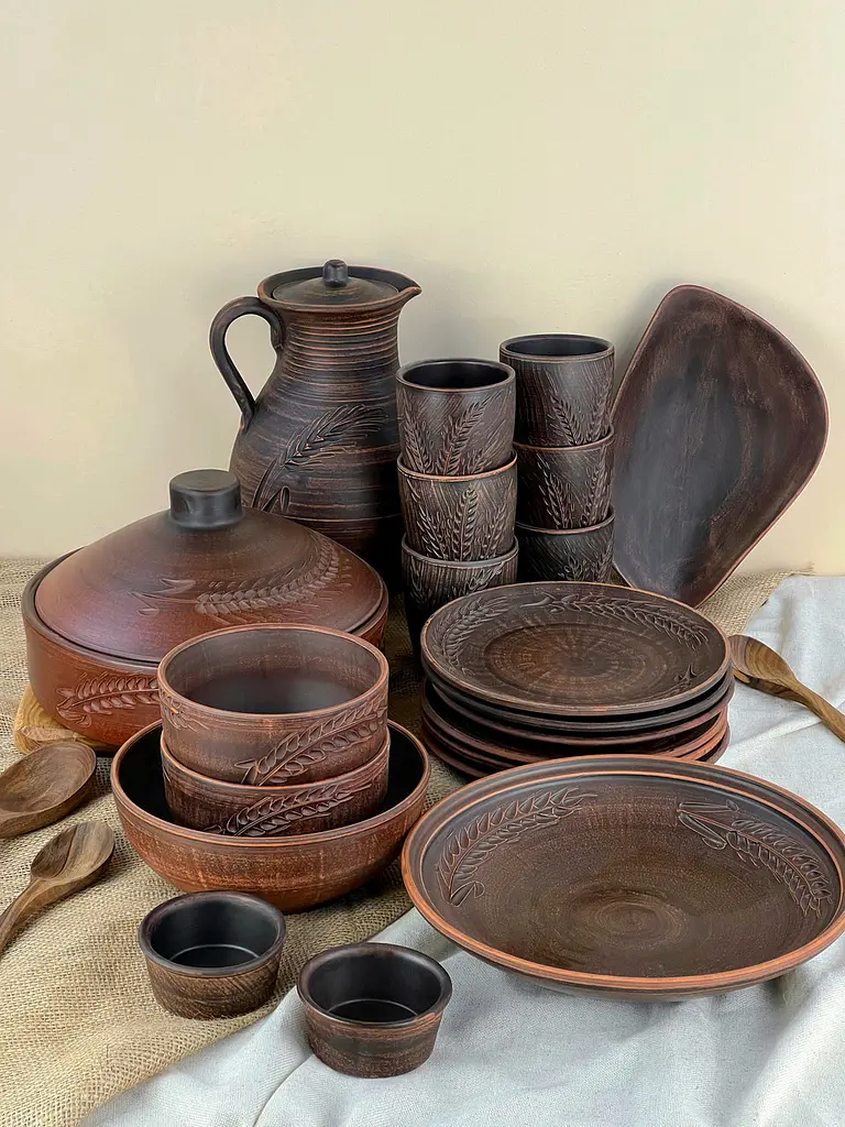 Цей набір поєднує в собі естетику традиційного українського стилю і практичність керамічного посуду. Рельєфний візерунок Колосок символізує достаток і сімейне тепло, а натуральна кераміка сприяє збереженню смаку і температури страв. Ідеальний для сервірування святкового або повсякденного столу.