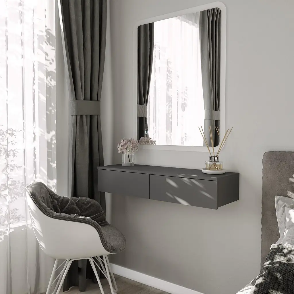 Відмінно підходь як декор - кімната виглядатиме затишно і стильно. Навісний стіл для макіяжу, органічно виглядатиме і в сучасному кабінеті для організації робочого простору візажиста та бровіста, для зручного зберігання косметики, доповнюючи кабінет. Зручний для зберігання косметики.