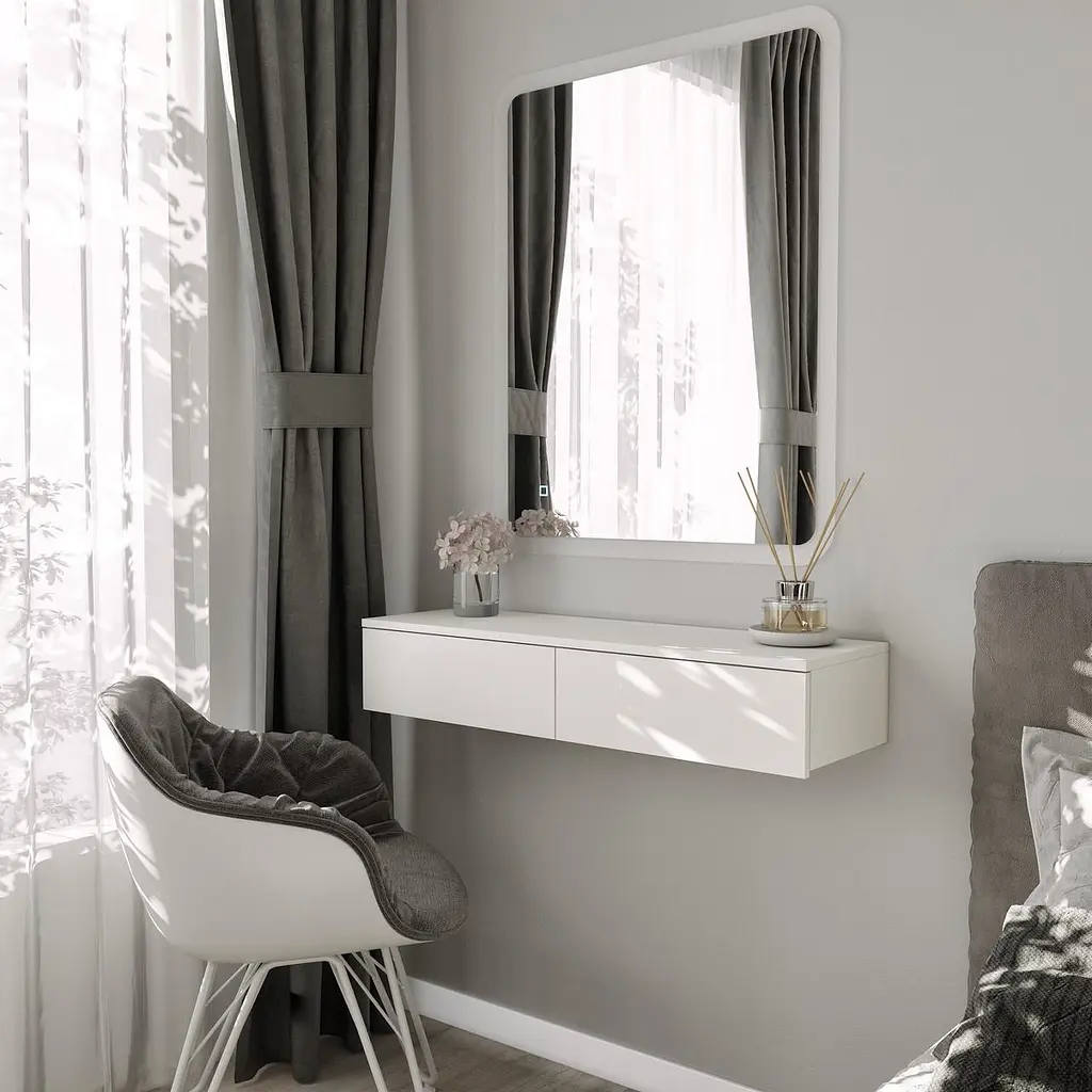 Відмінно підходь як декор - кімната виглядатиме затишно і стильно. Навісний стіл для макіяжу, органічно виглядатиме і в сучасному кабінеті для організації робочого простору візажиста та бровіста, для зручного зберігання косметики, доповнюючи кабінет. Зручний для зберігання косметики.