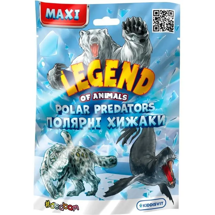 Приєднуйтесь у захопливу експедицію з дослідження ПОЛЯРНИХ ХИЖАКІВ серії «LEGEND OF ANIMALS MAXI»! Тут ви дізнаєтесь багато цікавого про різноманітних звірів: білий ведмідь, сніговий барс, морський леопард, горбатий кит, косатка та багато інших! Хто вміє контролювати швидкість свого серцебиття? Хто може витримувати -70 градусів за Цельсієм? А хто може прожити близько 200 років? Зберіть усіх героїв і дізнайтесь цікаві факти про них!