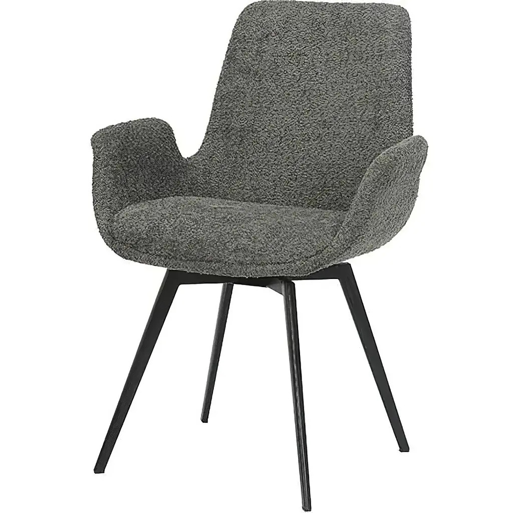 Стілець Prestol Дюк - це поєднання стилю та функціональності, ідеально підходить для вашого інтер'єру. Металева ніжка чорного кольору створює стійку та елегантну основу, доповнюючи загальний стиль стільця. Оббивка з матеріалу букле сірого кольору надає стільцю сучасного вигляду і відмінно поєднується з різними інтер'єрними стилями. Поворотний механізм на 360 градусів надає зручність руху та можливість легко змінювати напрямок обличчя. Стілець Дюк - це не тільки зручність, а й естетична насолода. Його стильний дизайн та якісні матеріали роблять його ідеальним вибором для обідньої зони, робочого столу або будь-якої іншої частини вашого простору.