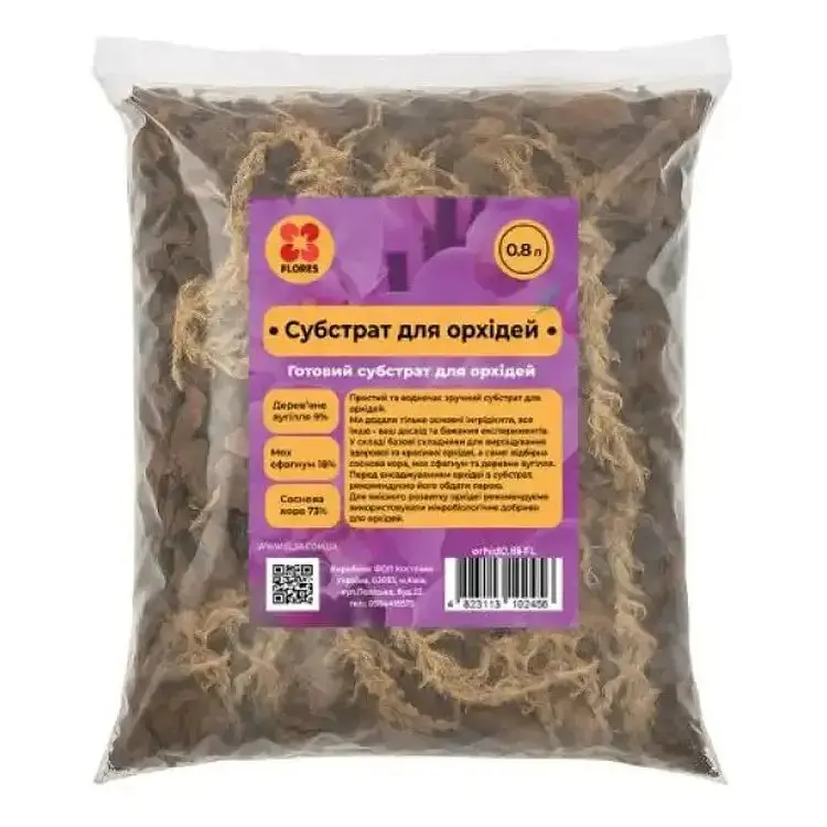 Субстрат TM Flores для орхідеї – це натуральний ґрунт для орхідей, призначений для комфортного розвитку та росту квітки в домашніх умовах. Він застосовується як основа для посадки, пересадки чи розмноження орхідей, забезпечуючи повітропроникність, рівномірне зволоження та захист від хвороб коренів. Рекомендується для початківців та досвідчених квітникарів, які прагнуть здорового цвітіння, з можливістю доповнення субстрату вручну. Перед використанням обдайте субстрат окропом або паром для додаткової дезінфекції, а після посадки забезпечте регулярний полив та хорошу вентиляцію.