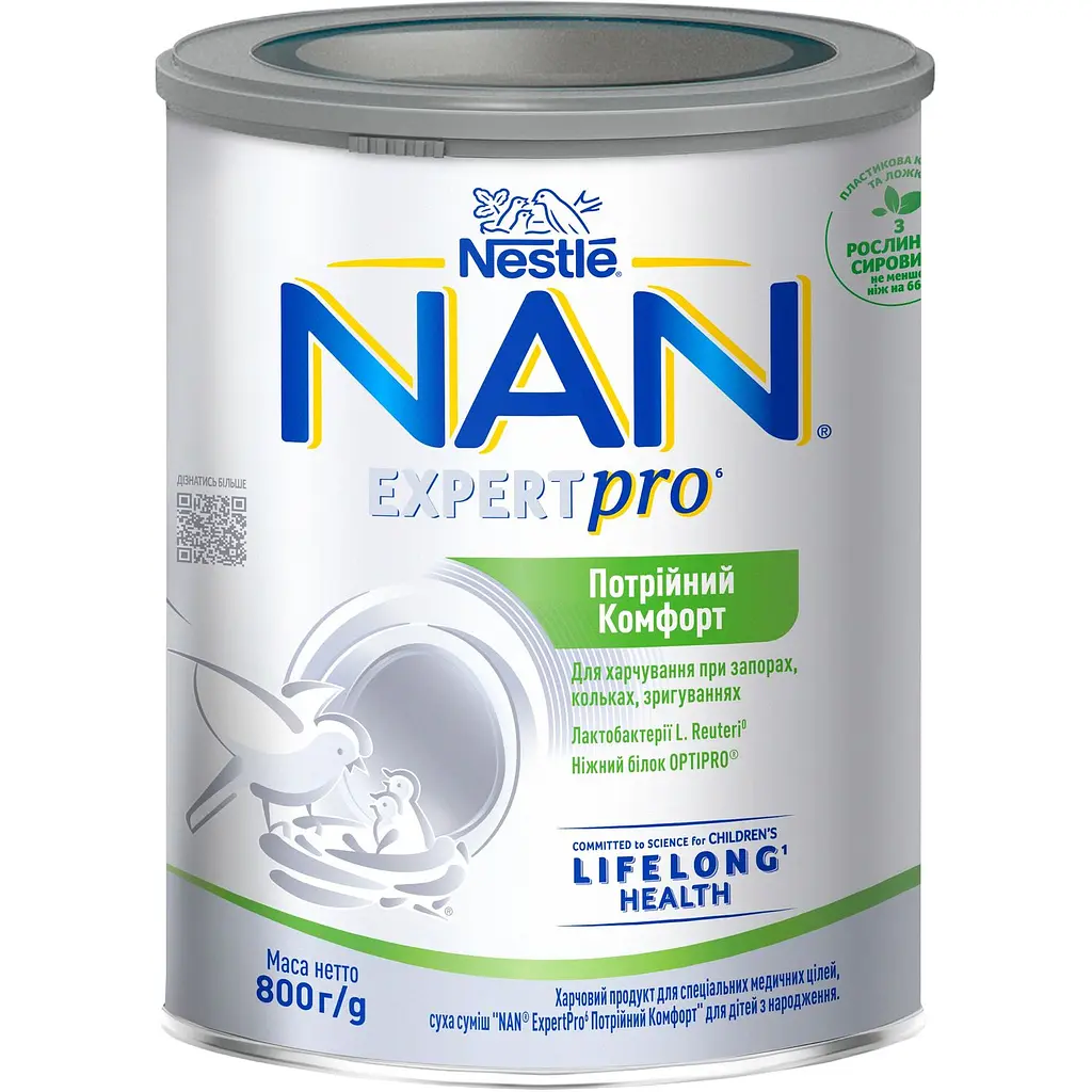 Суха молочна суміш NAN Expert Pro Потрійний комфорт стане гідною заміною материнського молока у разі неможливості грудного вигодовування. Частково гідролізований комплекс OPTIPRO® HA покриває потреби у білковій складовій. Лактокультура L. REUTERI насичує склад пробіотиком. А жирні кислоти DHA та ARA дають якісну базу для розвитку імунітету, інтелекту та функцій зору.