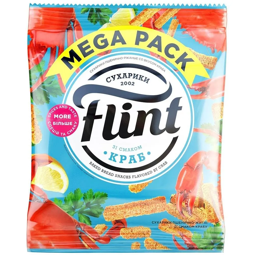 Сухарики Flint зі смаком краба - це чудовий снек, який порадує вас соковитим та морським смаком. Ці сухарики ідеально підходять для любителів морепродуктів. З їхньою хрусткою текстурою та насиченим морським смаком, вони створюють задоволення при кожному укусі.