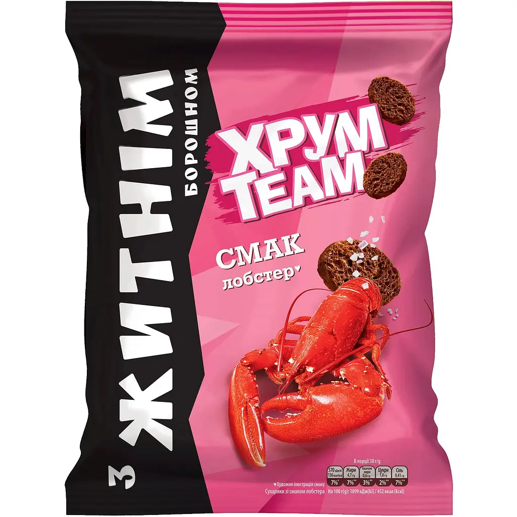 Сухарики ХрумTeam Лобстер - це вишукана смакова симфонія, яка призначена для тих, хто цінує вишуканий смак і ароматність у кожному шматочку.