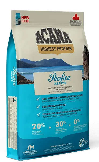 Шукаєте якісний корм для собаки з морською рибою? ACANA Pacifica Dog Recipe — ідеальний вибір для власників, які прагнуть забезпечити свого улюбленця природним, збалансованим і смачним харчуванням. Цей беззерновий корм для собак виготовлено в Канаді з найкращих інгредієнтів з усього світу.