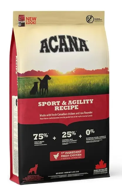 Розроблений згідно з вимогами FEDIAF, корм ACANA Sport & Agility підходить для всіх порід і вікових груп, включаючи великих собак у період зростання. Забезпечує повноцінне та різноманітне харчування для активного способу життя.
