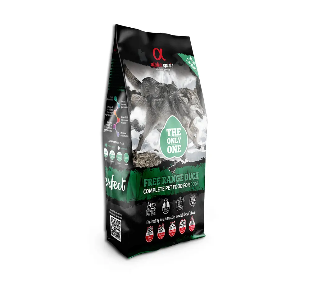 Alpha Spirit The Only One Free Range Duck – це повнораціонний беззерновий корм преміум-класу для собак усіх порід і вікових категорій. Він виготовлений з найкращих натуральних інгредієнтів, щоб підтримувати вашого улюбленця здоровим, енергійним і з блискучою, доглянутою шерстю.