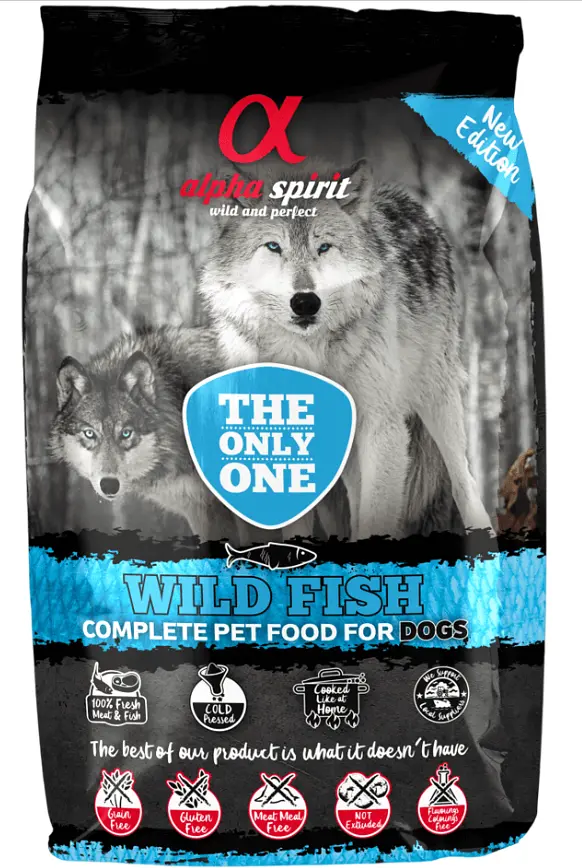 Раціон Alpha Spirit The Only One Wild Fish створений зі свіжої риби. Для приготування 1 кг корму використовується 3,1 кг свіжої риби при бережному процесі приготування за низьких температур, забезпечуючи збереження всіх поживних речовин, вітамінів та мінералів. Раціон не містить доданих жирів, зернових та глютену.