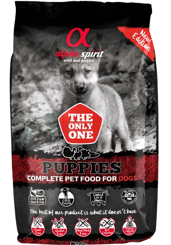 ALPHA SPIRIT The Only One Puppies – це повнораціонний корм для цуценят всіх порід. Корм виготовлений з найкращих натуральних інгредієнтів для підтримки здоров'я та сил собак. Корм виготовляється без екструзії, додавання зернових, м’ясного борошна та глютену.