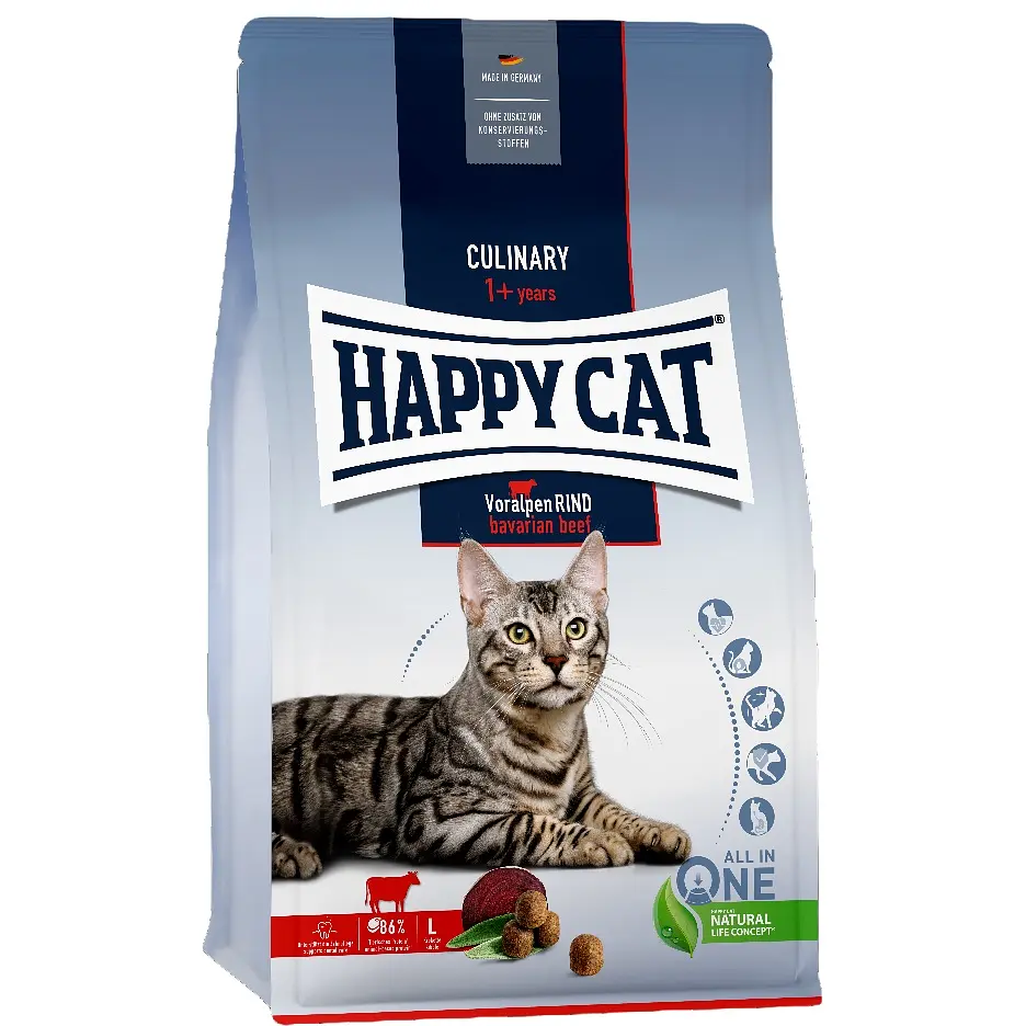 Корм Happy Cat Culinary Adult Voralpen-Rind (альпійська яловичина) виготовляється із сировини високої харчової якості, без пшениці, штучних барвників, ароматизаторів та консервантів, що забезпечує його чудовий смак і неперевершений аромат, який спокусить навіть примхливих вихованців.