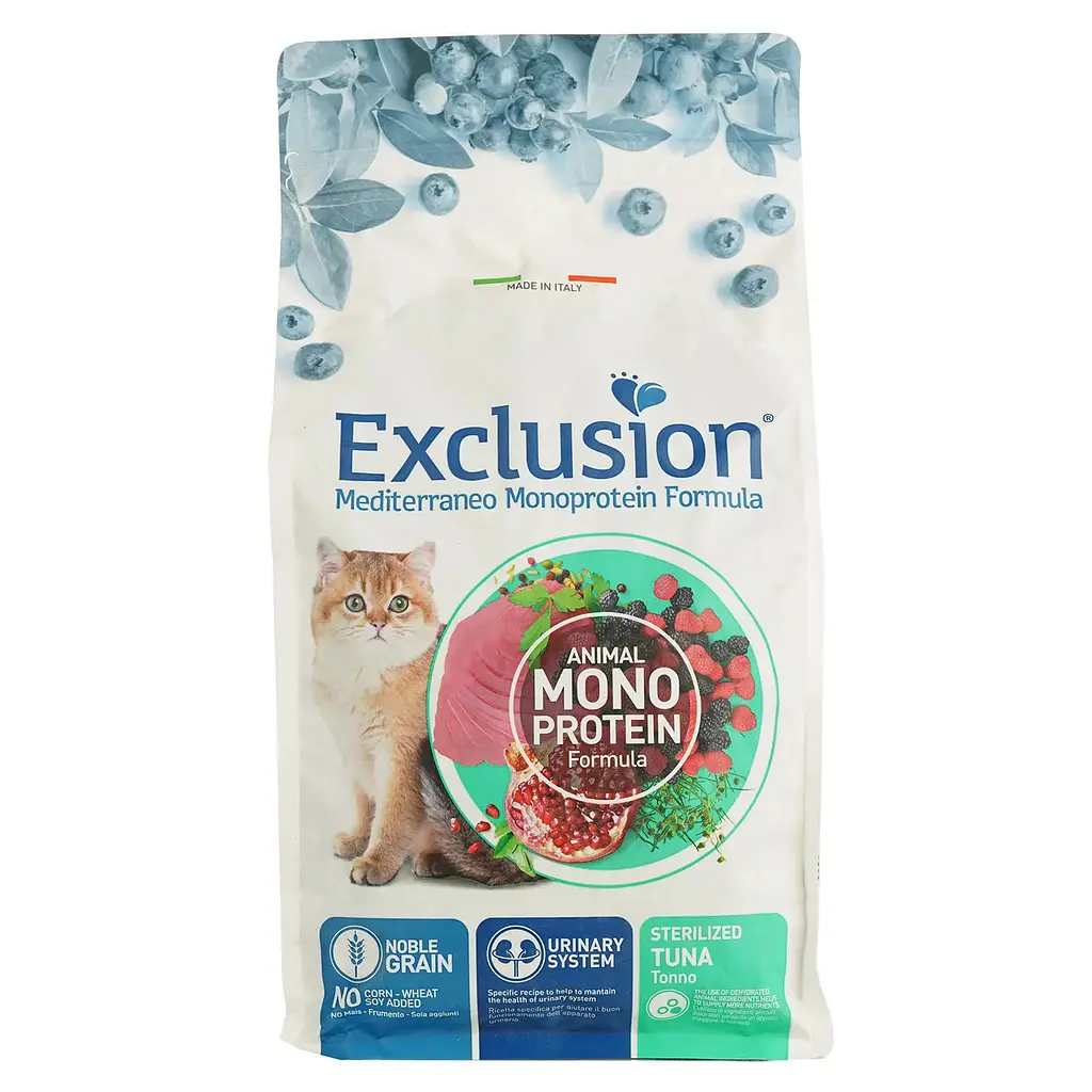 Стерилізовані коти та кішечки потребують особливого харчування. Їх організм досить чутливий і вразливий, тому потребує дбайливого раціону. Монопротеїнова формула корму не містить курячий жир, шкідливі злаки та сою, а так само в його складі є єдине джерело тваринного білка. Корм також збагачений інноваційним рецептом суперфуду середземноморських традицій: гранат, ожина та чорниця, які є природними антиоксидантами. До складу корму входить всім відомий подорожник, корисні властивості якого відомо вже давно. Цей продукт сприяє виведенню шерсті з організму та запобігає її комкуванню всередині організму.