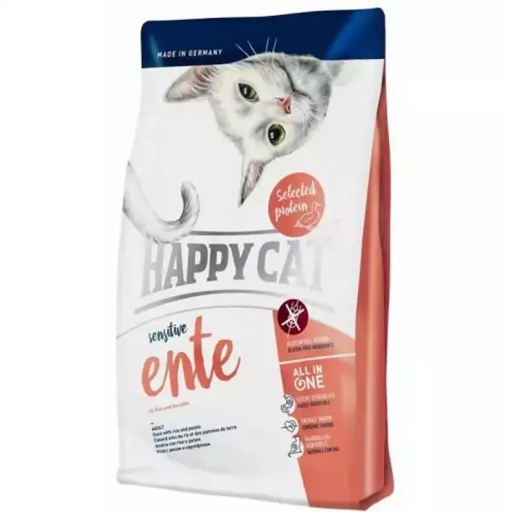 Сухий корм для котів з чутливим травленням Happy Cat (Хеппі Кет) Sensitive Ente виготовлений з високоякісних продуктів для котів з чутливим травленням та вибагливих у їжі пухнастих гурманів.