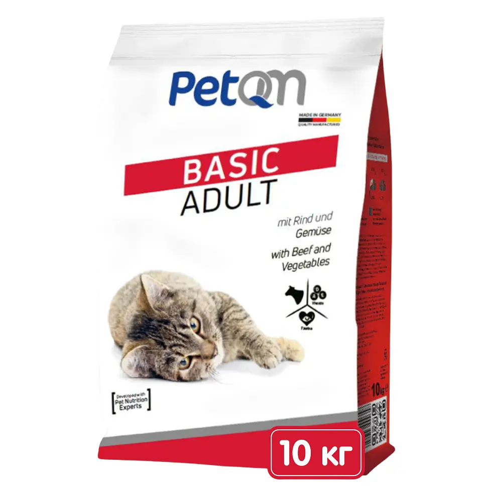 Сухий корм PetQM (ПетКьюМ) Cats Basic with Beef&Vegetables спеціально розроблений для дорослих котів.