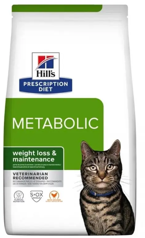 Feline Metabolic серії Prescription Diet від Hills вагою 1.5 кг – це лікувальний сухий корм для кішок, що дозволяє знизити вагу та підтримувати його в межах норми.