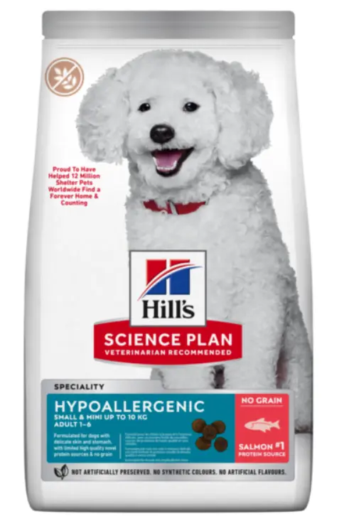 Сухий корм для собак Hill's Science Plan Adult Hypoallergenic Small & Mini (Хіллс Сайнс План Едалт Гіпоаллердженік) , з лососем - це повнорационное харчування з неперевершеним смаком для дорослих собак малих та мініатюрних порід віком від 1 до 1.
