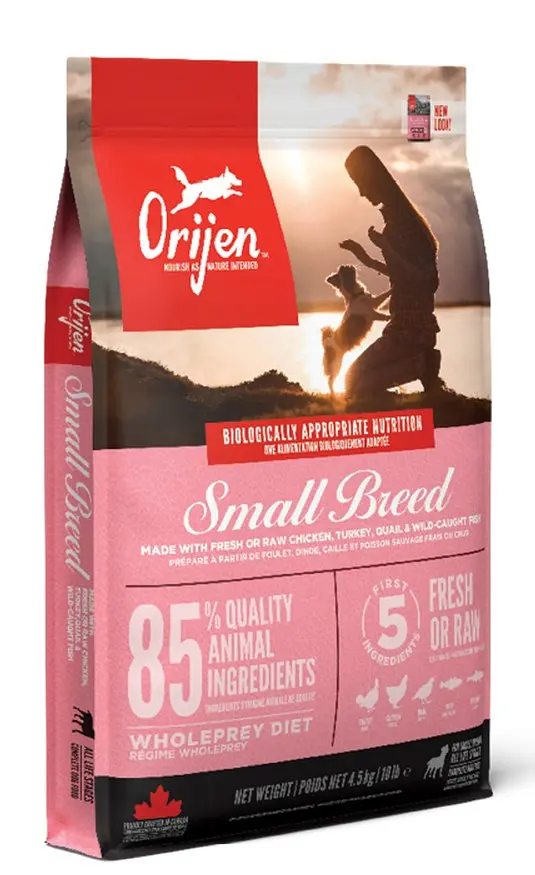 Orijen Small Breed Dog – це преміальний сухий корм, спеціально розроблений для собак дрібних порід. Завдяки високому вмісту протеїну та насиченому м’ясному складу (85% інгредієнтів тваринного походження), корм забезпечує оптимальний рівень енергії, підтримує м’язовий тонус, імунітет та здорову вагу вашого улюбленця.