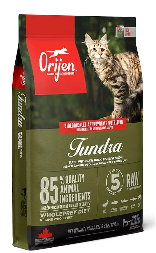 Раціон ORIJEN Tundra Cat створено для справжніх хижаків. 85% складу — це якісне м’ясо, риба та субпродукти: качка, арктичний голець, оленина, форель, сардина, козлятина, ягня, печінка. Завдяки рецептурі WholePrey (м’ясо + органи + кістки) та ліофілізованому покриттю з печінки, цей корм повністю відповідає природним потребам вашої кішки.