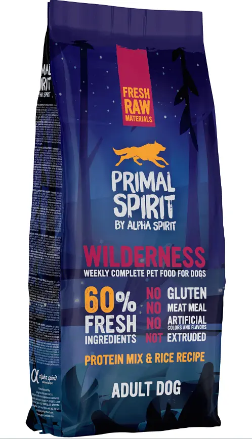 PRIMAL SPIRIT Wilderness – це натуральний повнораціонний сухий корм для дорослих собак. Основна частина раціону корму – це свіжі м’ясні інгредієнти, у вигляді високозасвоюваного та збалансованого раціону.