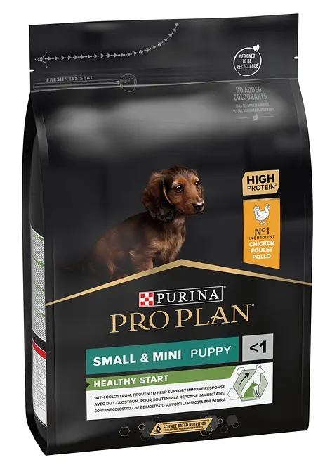 Сухий повнораціонний корм для цуценят малих порід PRO PLAN (Про План), який також підходить для вагітних та лактуючих собак. Перший рік життя Вашого собаки є вирішальним для його здоров’я впродовж всього життя. В цей період Ваше цуценя потребує особливого харчування, щоб у нього сформувались міцні зуби, м’язи та кістки. А оскільки природний захист його організму ще не повністю сформувався, цуценя ще не може бути надійно захищеним. Цей період у житті собаки також називають «імунною прогалиною», коли існує високий ризик ураження інфекціями та порушеннями системи травлення. Щоб допомогти цуценятам отримати якнайкращий старт у житті, ветеринари та дієтологи Purina розробили корм для цуценят малих порід PRO PLAN PUPPY.