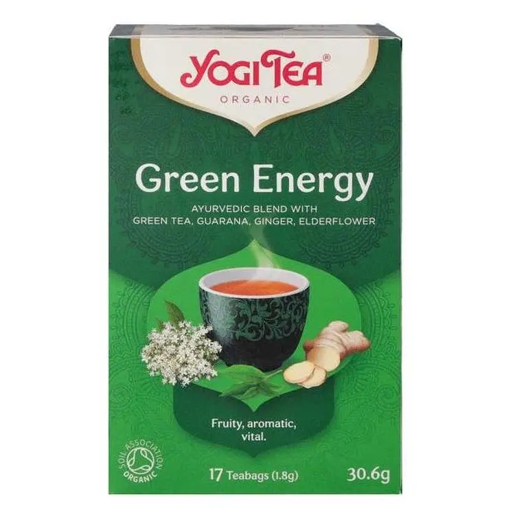 Суміш трав'яного та зеленого чаю Yogi Tea Green Energy має незвичайний збалансований смак, який супроводжується унікальним ароматом.