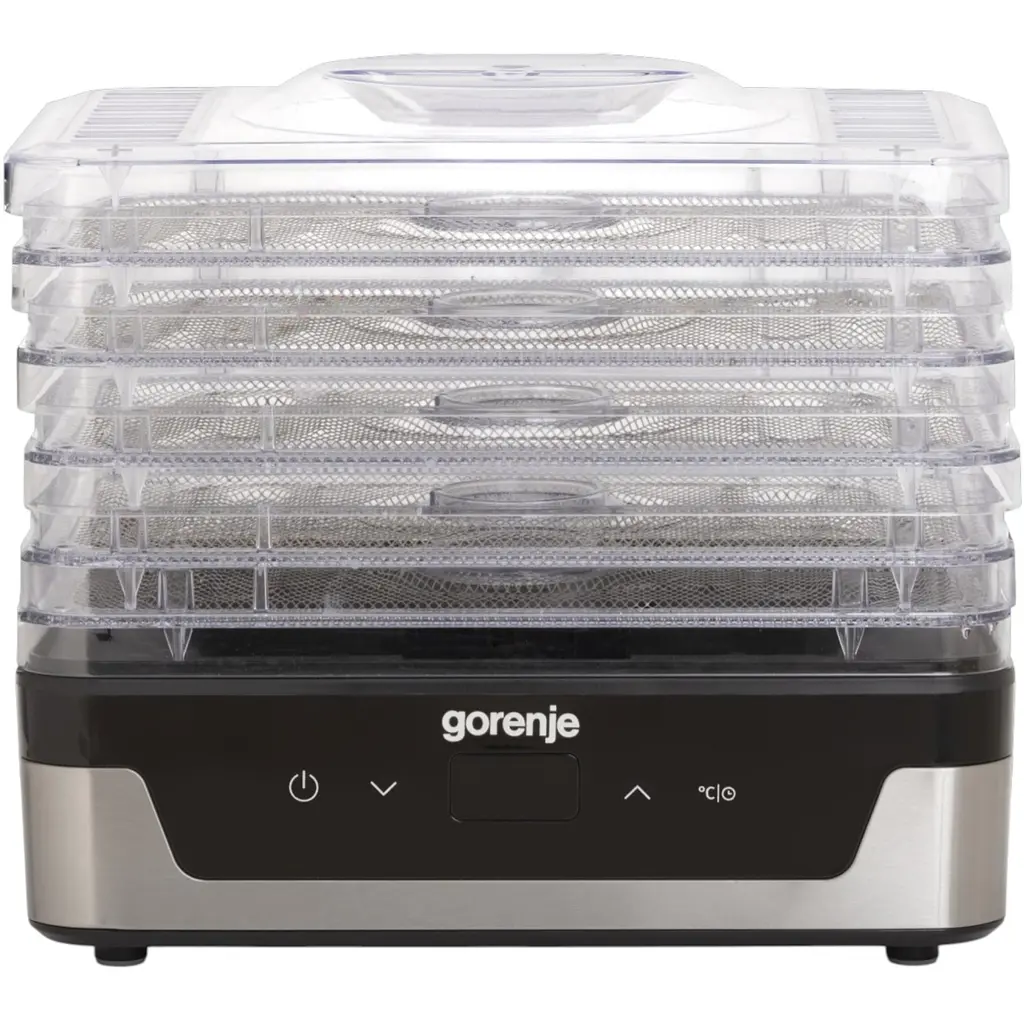 Сушилка для продуктів Gorenje FDK400DE – ідеальний прилад для натурального збереження смаку та користі фруктів, овочів, грибів, ягід, зелені, м'яса чи домашніх снеків, що поєднує потужність 240 Вт, зручність і ефективність для домашнього використання. З 5 знімними лотками з нержавіючої сталі, сушилка дозволяє одночасно сушити різні продукти без змішування ароматів, а регульована температура від 35 до 75 °C забезпечує точний контроль процесу для оптимального результату. Циркуляція гарячого повітря гарантує рівномірне висихання без потреби перевертати продукти, а прозора кришка та лотки дозволяють стежити за процесом без відкриття, зберігаючи тепло. Компактні розміри з можливістю складання лотків один в один полегшують зберігання, а захист від перегріву додає безпеки. Відповідаючи високим стандартам Gorenje, сушилка FDK400DE з таймером і знімними лотками, придатними для миття в посудомийній машині, робить процес сушки простим і гігієнічним, ідеально підходячи для здорового харчування та заготівлі продуктів на зиму.