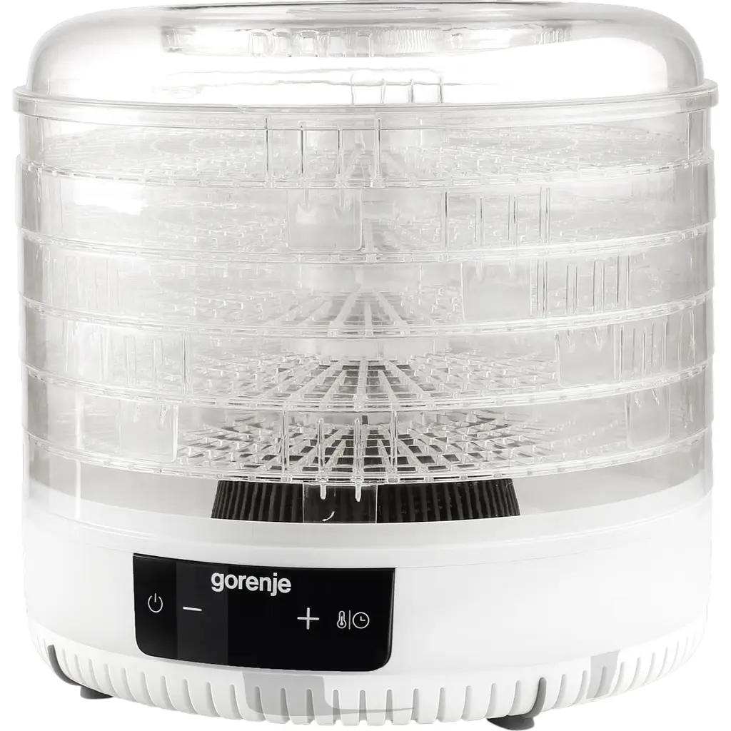 Продуманий дизайн. Зовнішній вигляд Gorenje FDK 500 GCW відмінно поєднує в собі практичність і стиль. Повністю прозорий корпус і лотки дозволяють контролювати процес сушіння для отримання потрібного результату, а прогумовані ніжки забезпечать максимальний рівень стійкості на будь-якій поверхні. Разом з тим модель відрізняється компактними розмірами та міцним корпусом з металу і пластика.