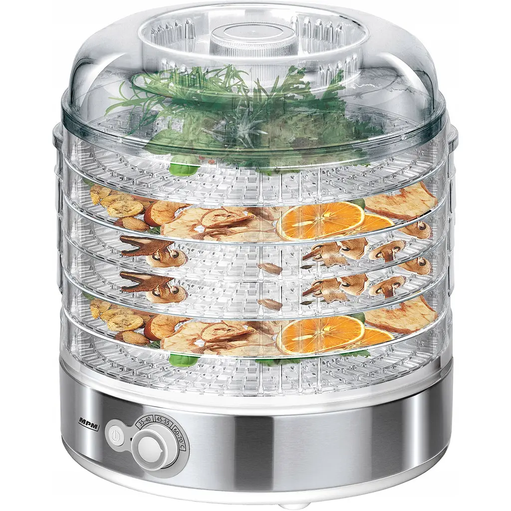 Збереження ароматів. З п'ятьма піддонами діаметром 31 см, MPM MSG-11 дає змогу сушити різні овочі та фрукти одночасно, не турбуючись про змішування ароматів. Герметична кришка надійно утримує аромати всередині, а тихий робочий прилад не створює додаткових зручностей у вашому домі.