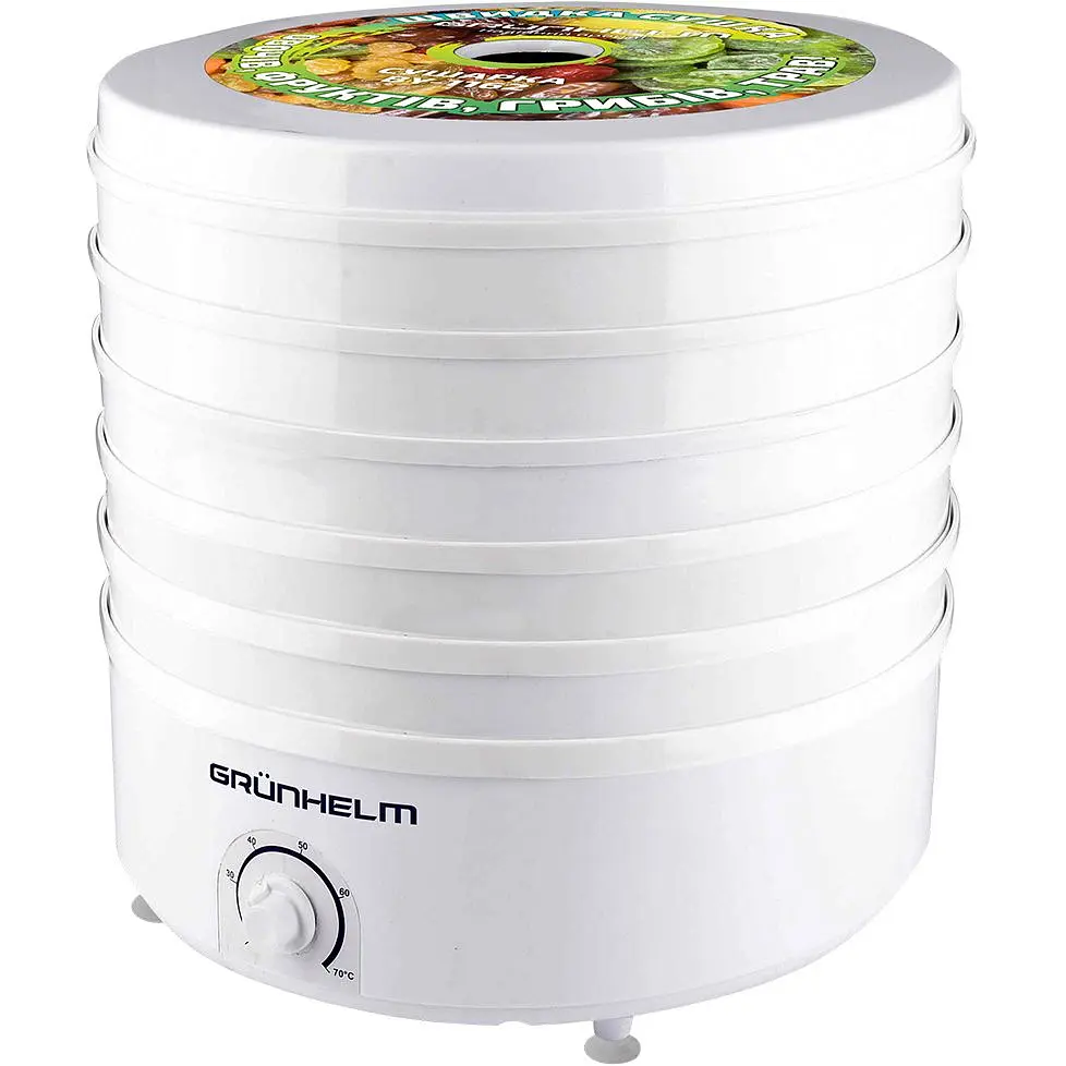 Сушарка для овочів і фруктів Grunhelm BY1162 - компактна і проста в експлуатації, вона стане незамінним помічником для будь-якої господині. Вона допоможе зберегти на зиму гриби, овочі, ягоди та лікарські трави. Також в ній можна сушити домашню локшину, хліб і рибу. Всі продукти довго зберігаються, чи не пересушується, не втрачають свої смакові якості та користь.