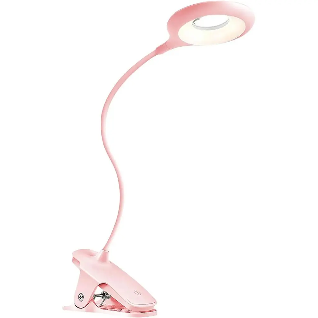 Світлодіодна лампа для читання з кріпленням на кліпсі, зарядка через USB, 3 колірних режими і 10 рівнів яскравості, регульована на 360° гнучка лампа для ліжка для використання біля ліжка, на столі, в офісі, переносна і для захисту очей (рожева)