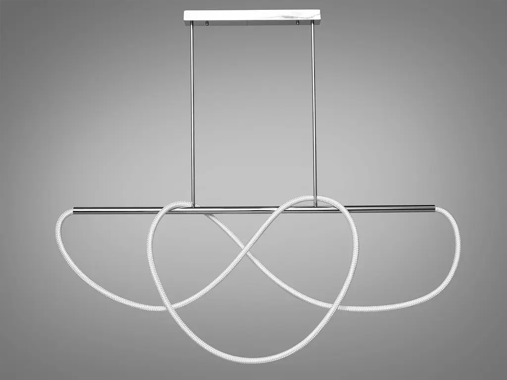 Підвісна Лед люстра в вітальню шланг потужністю 48W, втілює в собі витонченість і технологічну досконалість. Її дизайн змушує замислитися над нескінченністю простору, адже кожен зигзагоподібний звив люстри відображає безмежність уяви дизайнера, що надихає на творчість і мрію. Найвища якість матеріалів і сучасний дизайн втілюються в світильнику шланг з серії "роуплайт". Гнучка силіконова трубка, всередині якої світлодіодна стрічка, обгорнута натуральним текстилем, обертається навколо металевої основи, створюючи футуристичний вигляд. Такий дизайн не тільки приковує увагу, але й дозволяє легко адаптувати світло для різних потреб. Додатково текстильна обтяжка забезпечує довговічність і захищає силіконову поверхню від зношування. Світло, що ллється з цієї підвісної красуні, м'яке та розсіяне, огортає простір затишком та теплом, перетворюючи кожну вечерю на кухні у сімейну церемонію, де розмови та сміх переплітаються з ароматами улюблених страв. Люстра на кухні – це не лише освітлення, а й чарівний елемент, що об'єднує родину. Вона ідеально підходить для освітлення вітальні, де кожен відтінок світла сприяє розслабленню та відпочинку, надаючи кожному моменту особливої атмосфери. Світлодіоди забезпечують довговічність і енергоефективність, що робить її прекрасним вибором для сучасних люстри в зал, де потрібно якісне освітлення. Люстра лофт є втіленням сучасної естетики та дизайнерського підходу, який відповідає найвищим стандартам стилю і комфорту. Також ця лед люстра шланг ідеально підійде для великих просторів, таких як вітальні чи зали в готелях, де важливо створити унікальну атмосферу. Сучасні люстри в зал утілюють в собі неповторність та характер, що робить їх відмінним вибором для любителів інтер'єрного мистецтва. Люстра сучасна, з її чистими лініями та елегантними формами, стане основою для сучасного дизайну в кожному домі, де світло відіграє ключову роль у створенні настрою і атмосфери. Навіть у кімнаті для гостей вона стане прекрасним доповненням, завдяки своїй універсальності та красі. Враховуючи, що люстри недорогі можуть також бути стильними і сучасними, ця модель стає виразом того, що високоякісне освітлення доступне кожному. Її купівля не зашкодить вашому бюджету, надаючи при цьому розкоші та комфорту вашому житловому простору.